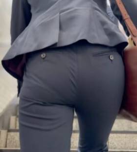 《ピタッと張り付くパンツスーツ!フルバックパンティーを浮かび上がらせる》